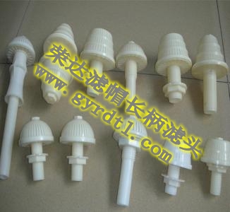 滤头滤帽是一种较为新颖的滤池反冲洗配水配气装置之一,此种产品有梅花型、塔型、蘑菇型、圆柱型等。此材质采用ABS工程塑料,强度大,耐久性好,缝隙不变形,分布均匀,布置合理,改善了滤头的水力特性,减小水头损失,冲洗无死角区,不积泥,此装置的气水反冲洗效果好,节水,节能。反冲水量仅为传统滤池的1/2到1/3而且运行稳定,滤后水质水量明显提高, 水厂效益和社效益显著。目前已在各类新建滤池以及传统滤池改造的工程中广泛推广应用。滤头、滤板气水反冲洗或滤头板单水反冲洗工艺。经全国多家大、中、小型水厂新建或改造后使用证明:滤头、滤板配水系统具有结构简便,工艺技术可靠、水头损失小,能耗低,无死水区、不易堵塞积泥、施工管理方便等一系列优点。排水帽具有机械强度高,比缝隙面积大,在纯水中稳定性好。滤水帽适用于各种相配的离子交换柱,活性炭过滤器使用,也可用于快滤池的排水系统,滤头是滤池底部配水系统汽水反冲冼装置,它能有效地冲洗出滤池中的污泥杂物,保证滤池水质水量正常运行。