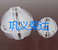 多面空心球是80年代末期开发出来的一种新型球形填料,它由两个半球合成一个球形,每个半球由若干个半扇形叶片组成,上下叶片相互错开排列。 广泛应用于除氯气、除氧气、除二氧化碳气等环保设备中。主要用聚丙烯(PP)材料制成,也可按用户要求另选其它塑料材料加工生产。
